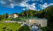 Das Hotel Rimski Dvor, idyllisch zwischen dem Sofjin Dvor und Zdraviliški Dvor gelegen, fügt sich harmonisch in die terrassenartig abfallende Landschaft ein und bietet eine perfekte Kulisse für Entspannung und Erholung. Mit 68 komfortablen Zweibettzimmern, die mit modernen Annehmlichkeiten ausgestattet sind, gewährleistet es höchsten Komfort. Durch einen direkten Gang mit den Rimske Terme verbunden, besticht das Hotel nicht nur durch außergewöhnliche Architektur, sondern auch durch eine grüne, ruhige Atmosphäre, die Tradition und moderne Elemente gekonnt vereint. Es kombiniert Tradition mit modernen Elementen und bietet umfassende Serviceleistungen, darunter einen mehrsprachigen 24-Stunden-Kundenservice. Das Hotel befindet sich im malerischen Rimske Toplice, einem idyllischen Kurort, der von üppiger Natur umgeben ist und nur 17 km von Celje entfernt liegt – der ideale Ort, um dem Alltag zu entfliehen und neue Energie zu tanken.