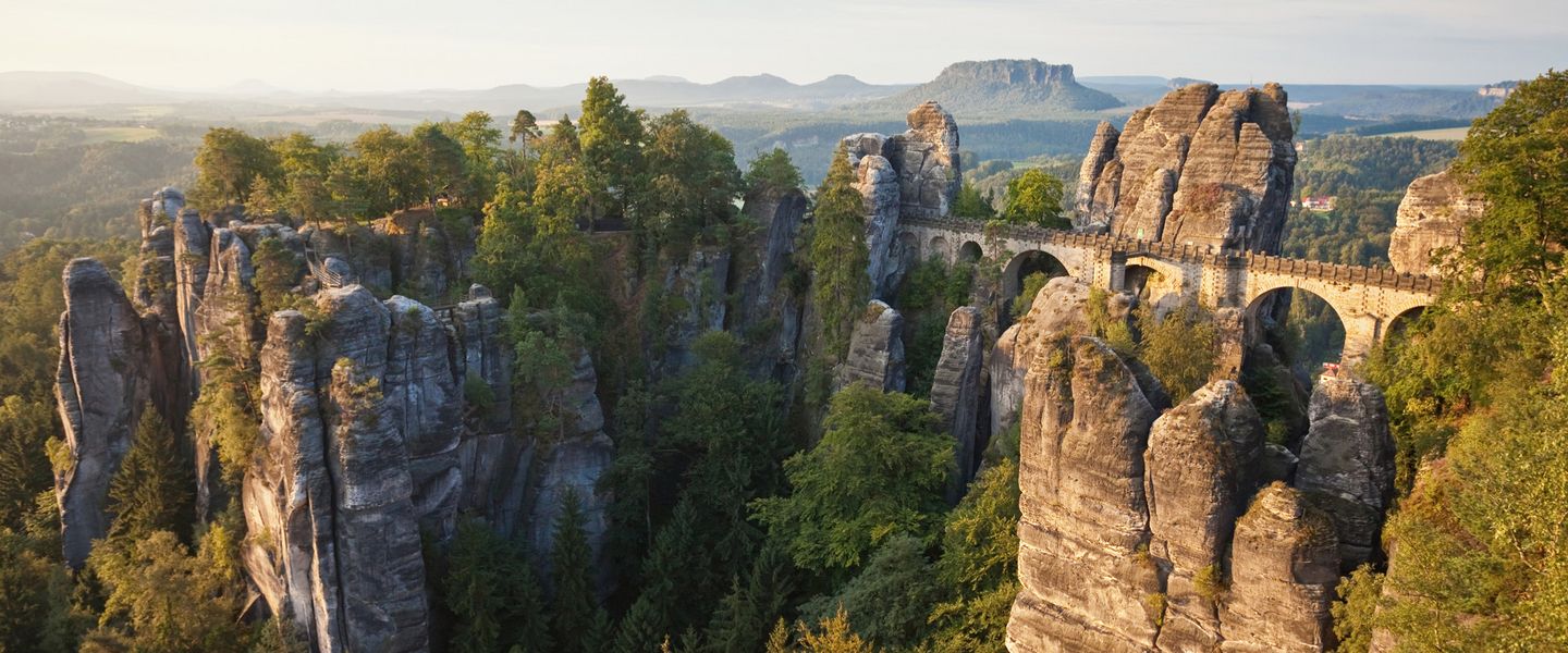 3. Tag: Wir beginnen den Tag mit dem herrlichen Park Pillnitz und fahren anschließend in die besonders schöne sächsische Landschaft. Tiefe Schluchten, steil aufragende bizarre Felsformationen und die typischen Tafelberge kennzeichnen das Elbsandsteingebirge, eine außergewöhnliche Landschaft. Wir erreichen die atemberaubende und bizarre Felsenlandschaft der „Bastei", von der sich ein herrlicher Ausblick auf das Elbtal auftut. Hoch oben die Festung Königstein.