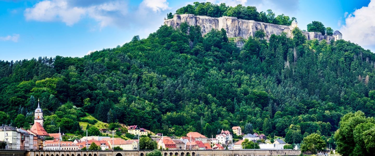 Die Festung Königstein befindet sich in der gleichnamigen Stadt Königstein, etwa 30 Kilometer östlich von Dresden, im Herzen der Sächsischen Schweiz. Geografisch liegt die Festung auf einem 240 Meter hohen Tafelberg, der einen herrlichen Blick auf die umliegenden Felsen und die Elbe bietet. Die Region ist gut erreichbar über die A17 und die B172, die eine direkte Verbindung zu den wichtigsten Städten und Sehenswürdigkeiten in der Umgebung bieten. Die zentrale Lage der Festung macht sie zu einem idealen Ziel für Reisende, die die Schönheit der Sächsischen Schweiz und die kulturellen Schätze Sachsens erkunden möchten. Die Kombination aus historischer Bedeutung, atemberaubenden Ausblicken und der Nähe zu weiteren Attraktionen, wie dem Nationalpark Sächsische Schweiz und der Bastei, macht die Festung Königstein zu einem bereichernden Erlebnis für alle, die die Faszination dieser einzigartigen Region entdecken möchten.