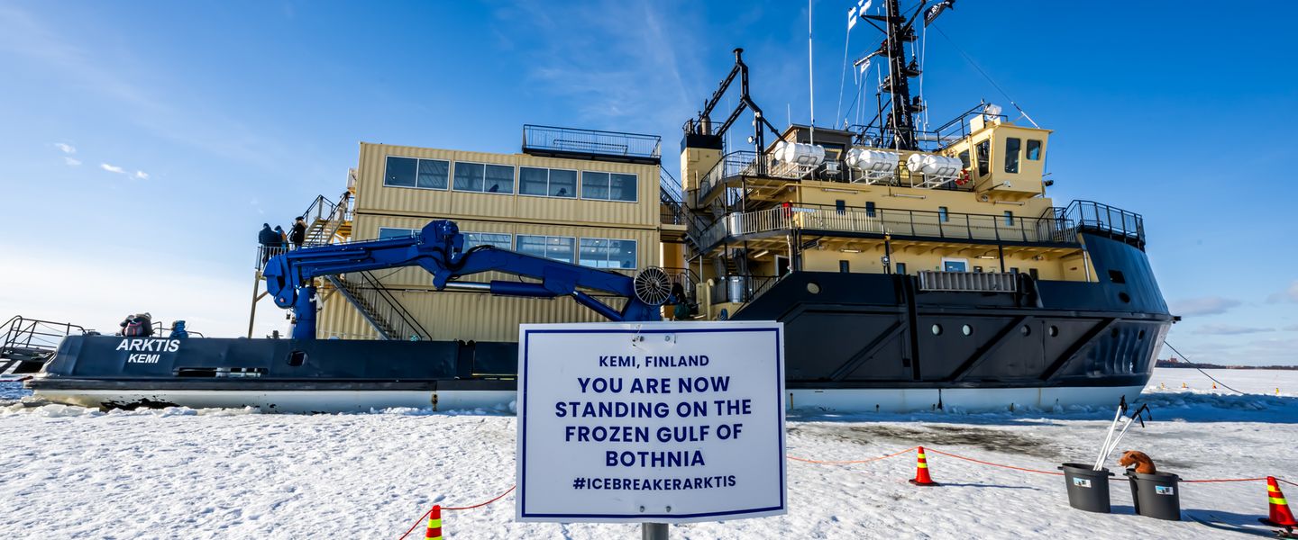 Ein ganz besonderes Abenteuer erwartet Sie heute! Mit dem größten Eisbrecher Lapplands unternehmen Sie eine spannende Expedition ins finnische Eis. Der Höhepunkt dieser Schiffsreise ist ein unvergesslicher Spaziergang auf dem zugefrorenen Meer – ein Erlebnis, das Sie so schnell nicht vergessen werden. Anschließend setzen Sie Ihre Reise in Richtung Norden fort. Kurz hinter Rovaniemi überqueren Sie den Polarkreis und fahren weiter durch die unberührte Weite von Finnisch-Lappland. Die beeindruckende Natur, geprägt von Fjälls, Nadel- und Birkenwäldern sowie großen Flüssen, begleitet Sie auf dem Weg nach Levi/Sirkka, einem der beliebtesten Wintersportgebiete Finnlands.