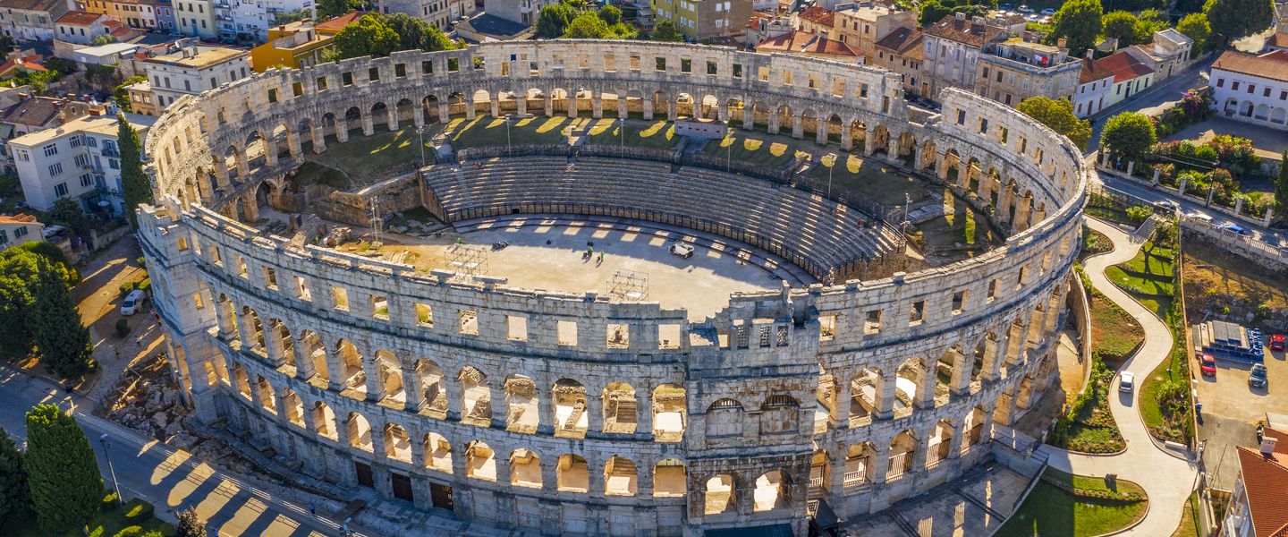 Unternehmen Sie einen Ausflug in die Geschichte: In Pula erwartet Sie eine faszinierende Mischung aus Antike und Moderne. Das beeindruckende römische Amphitheater, enge Gassen und lebendige Plätze erzählen Geschichten aus über 2000 Jahren.
