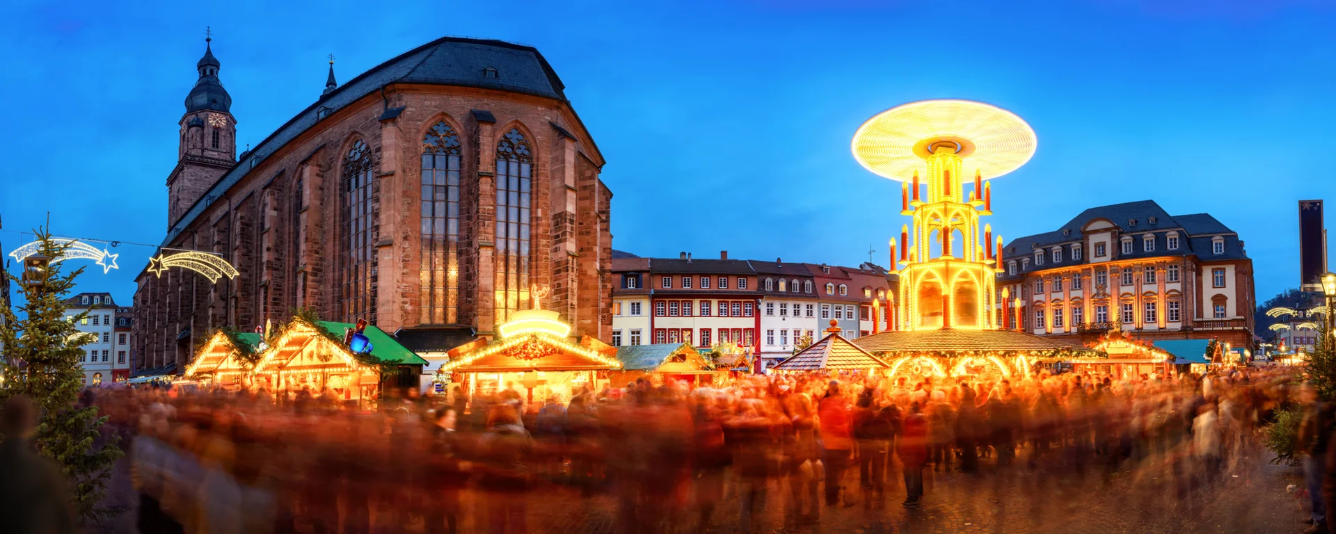 Beim Adventsspaziergang lassen sich neben den malerischen Gassen und Sehenswürdigkeiten eine Vielzahl an weihnachtlichen Buden entdecken, die auf verschiedenen Plätzen in der Altstadt bezaubernde Geschenkideen feilbieten. Wer sportliche Betätigung sucht, den erwartet auf dem Karlsplatz eine der schönsten Eisbahnen Deutschlands mit Blick auf die weltberühmte Schlossruine.