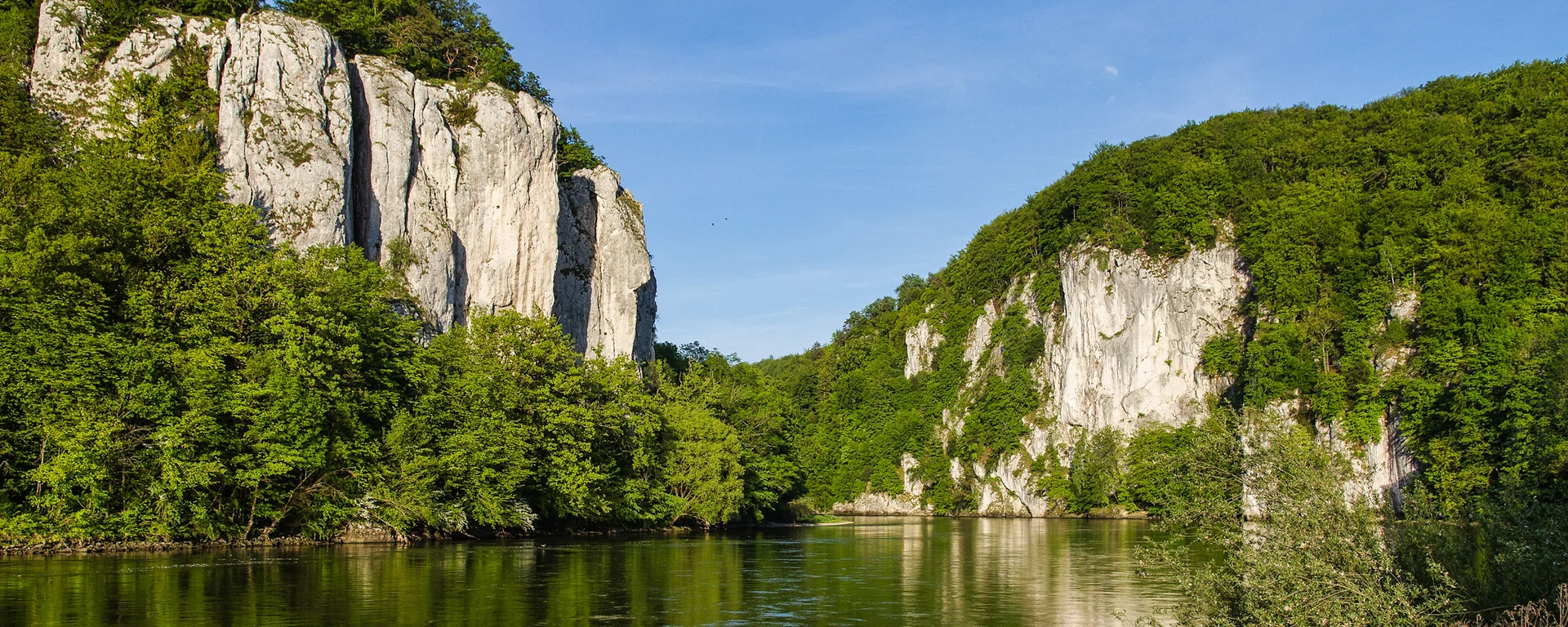 Die Weltenburger Enge liegt im Landkreis Kelheim in Bayern, Deutschland, und erstreckt sich entlang der Donau zwischen den Städten Kelheim und Weltenburg. Geografisch befindet sich die Enge in der Nähe des Naturparks Altmühltal und ist von einer beeindruckenden Landschaft aus Felsen, Wäldern und sanften Hügeln umgeben. Die Anreise zur Weltenburger Enge ist sowohl mit dem Auto als auch mit öffentlichen Verkehrsmitteln gut möglich, wobei die Region über ein gut ausgebautes Verkehrsnetz verfügt. In der Umgebung gibt es zahlreiche Möglichkeiten für weitere Aktivitäten, darunter Wanderungen auf den zahlreichen Wanderwegen, Bootsfahrten auf der Donau und Besuche der historischen Stadt Kelheim. Die zentrale Lage der Weltenburger Enge, kombiniert mit der Möglichkeit, die faszinierende Natur und die kulturellen Schätze der Region hautnah zu erleben, macht dieses Ziel zu einem unvergesslichen Erlebnis für alle, die diese beeindruckende Destination erkunden möchten.