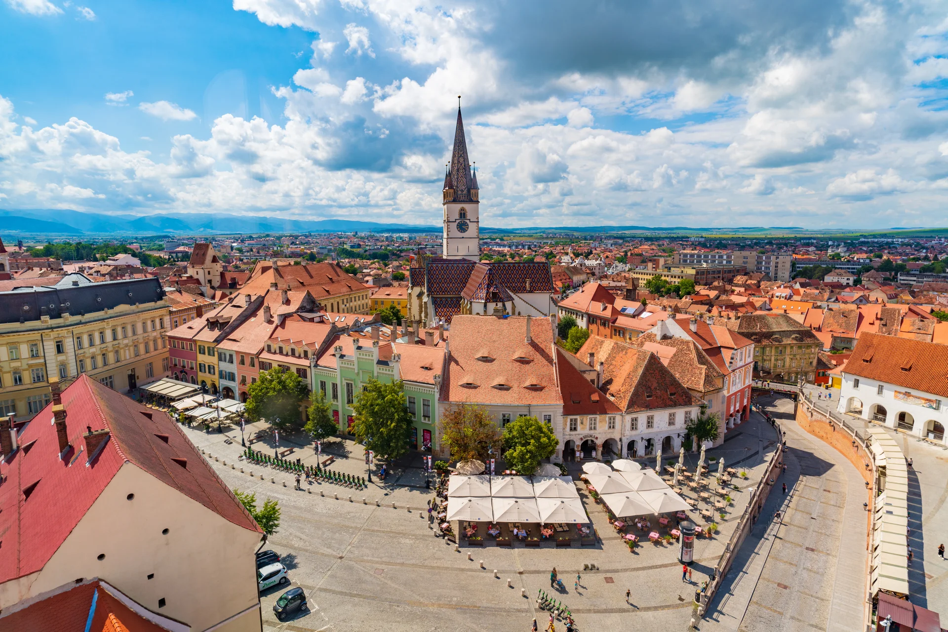 Nach dem Frühstück fahren Sie nach Sibiu, auch bekannt als Hermannstadt. Die Altstadt ist berühmt für ihre gut erhaltene germanische Architektur und die Überreste der mittelalterlichen Mauern und Türme. Besuchen Sie die Metropolitenkirche, die mit ihrer beeindruckenden Kuppel und der reich verzierten Fassade ein wahres architektonisches Meisterwerk ist. Erfahren Sie mehr über die multikulturelle Geschichte von Sibiu, bevor Sie nach Timișoara weiterfahren und dort übernachten.