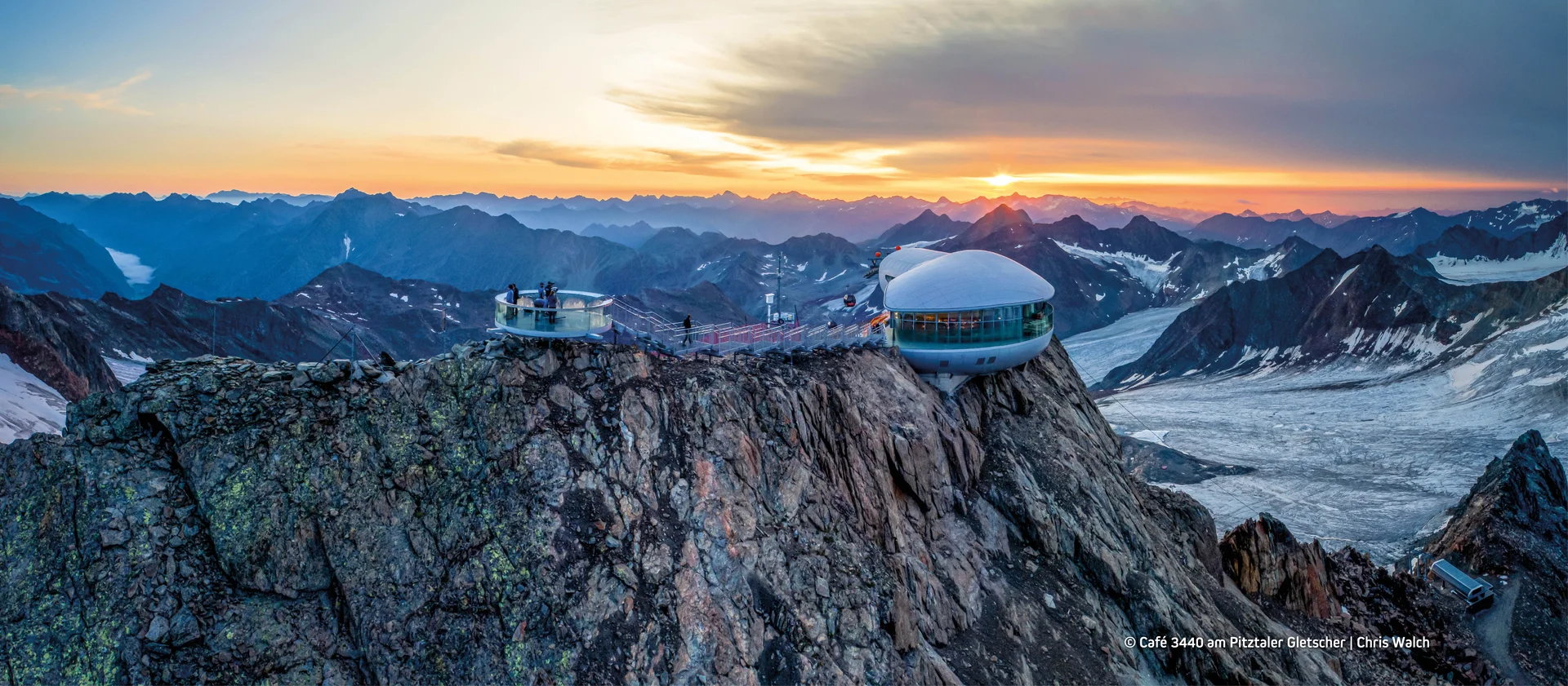 Dort, wo der Himmel auf die Erde trifft, liegt das höchste architektonische Highlight Tirols: Das Café 3440 – ein modernes Bauwerk, welches sich gekonnt in die Bergwelt des Pitztaler Gletschers einfügt.